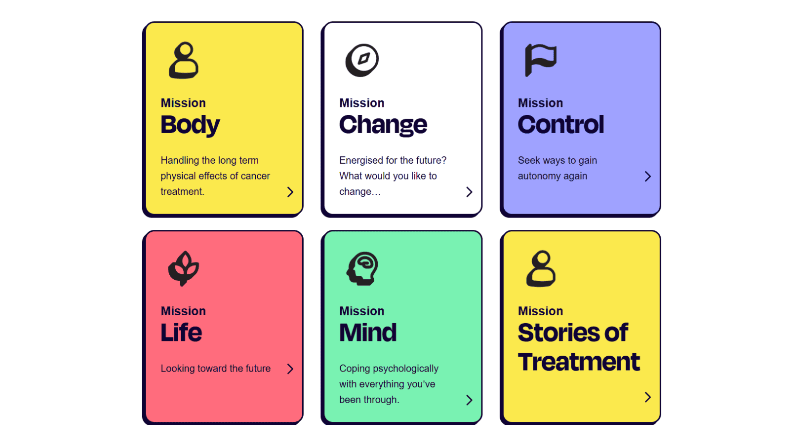 Structured into 6 ‘Missions’, you’ll find over 150 strategies written by cancer survivors just like you. Join us!